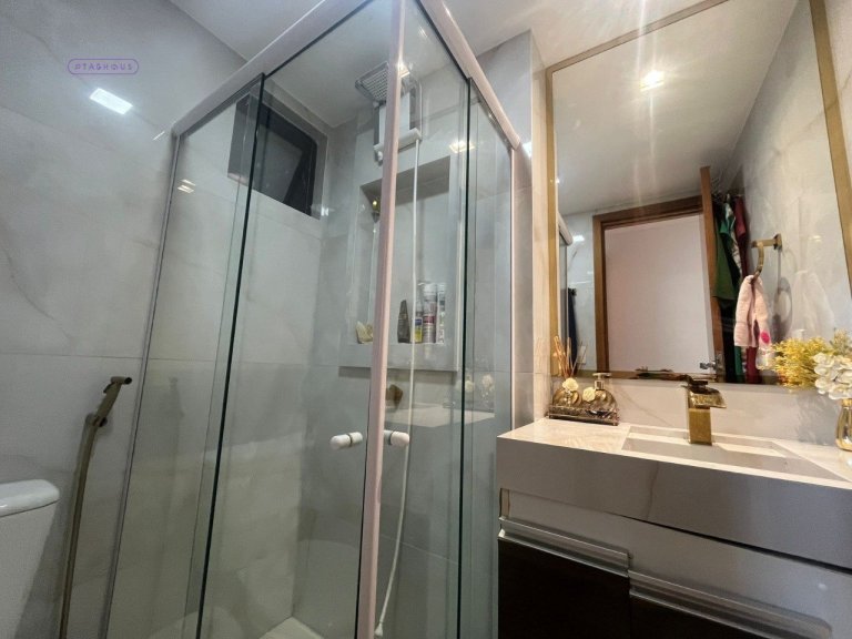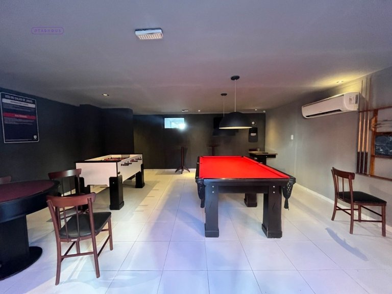 O condomínio oferece elevador, piscina, salão de festas e salão de jogos, ideal para viver ou investir.